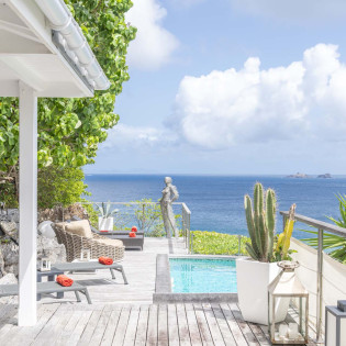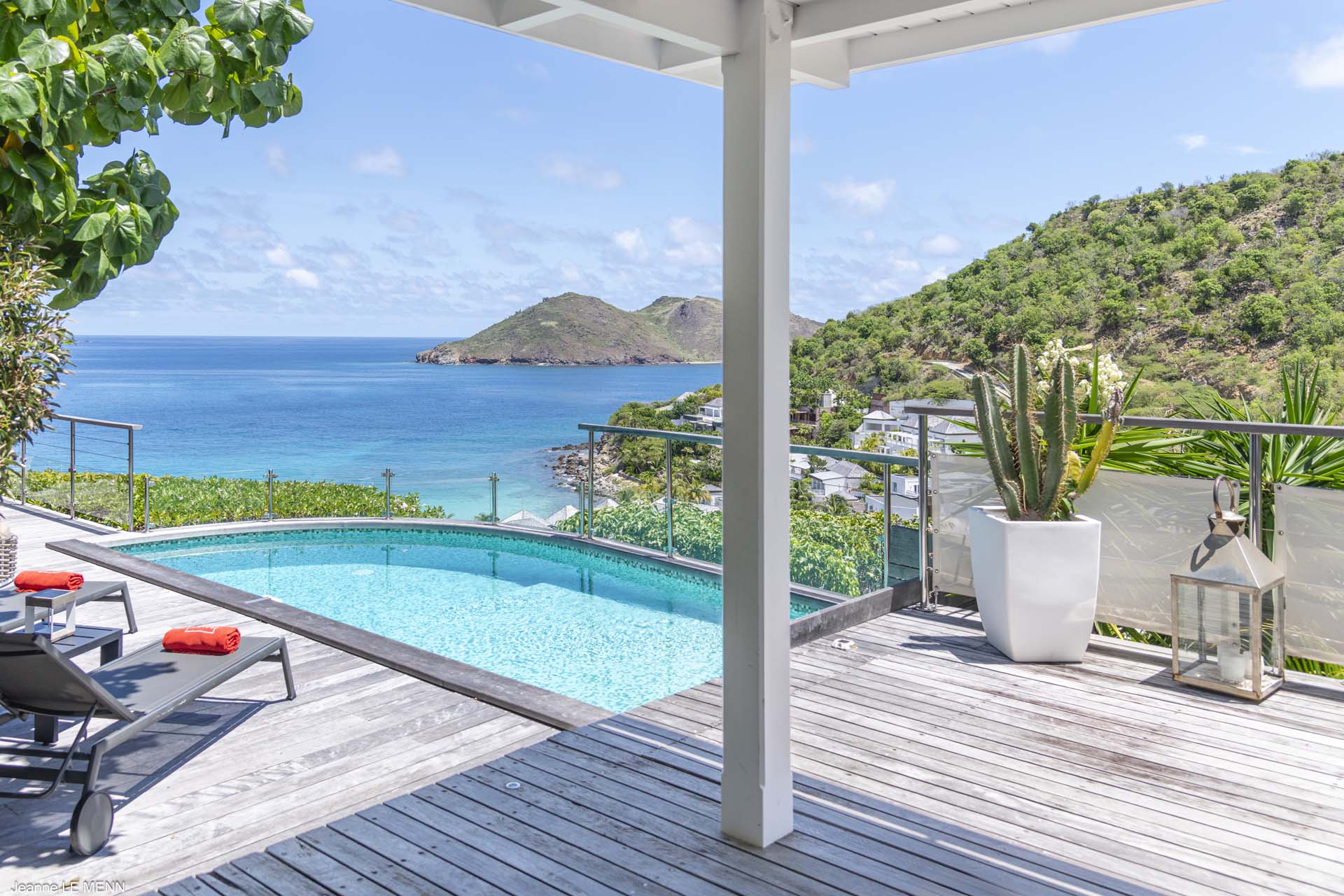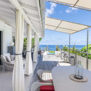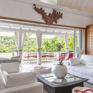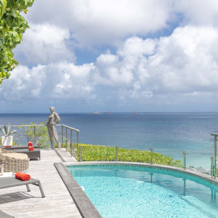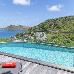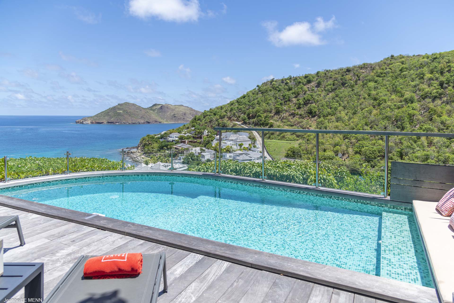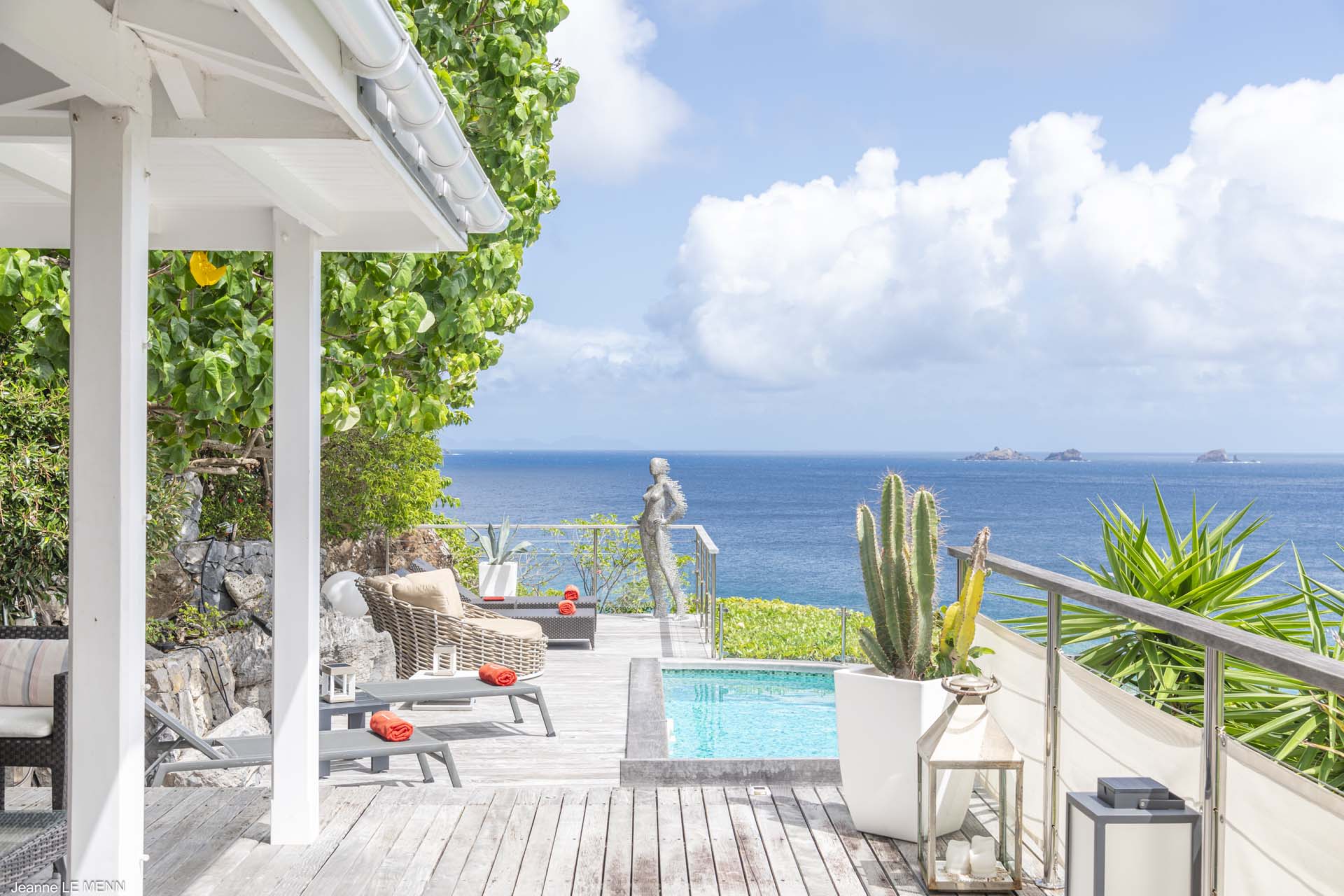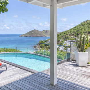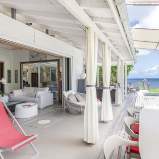 Villa Aloa has an abundance of features, the outdoor spaces include a multi-level deck with a kitty-cornered plunge pool that overlooks a lovely view of the sea.