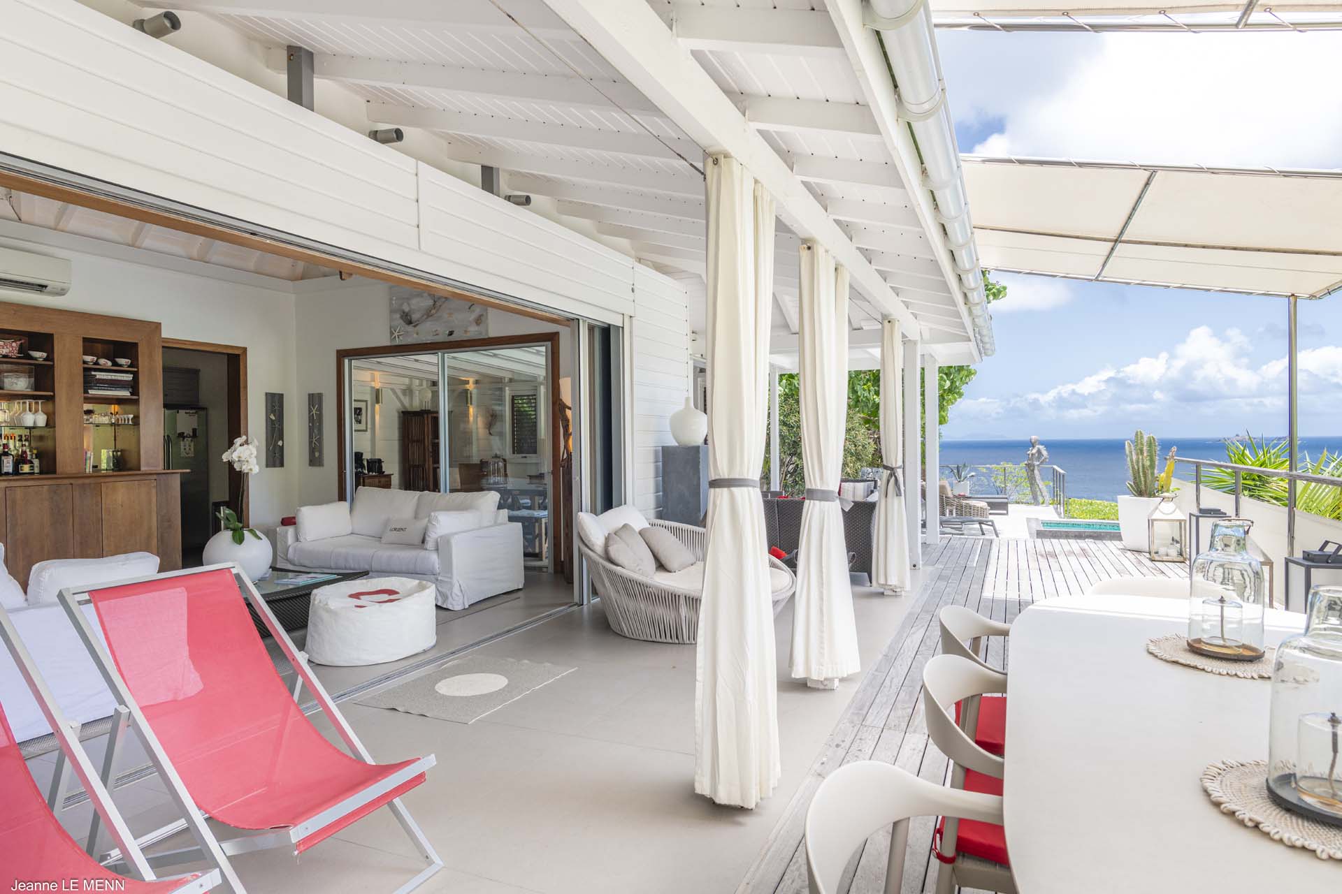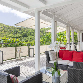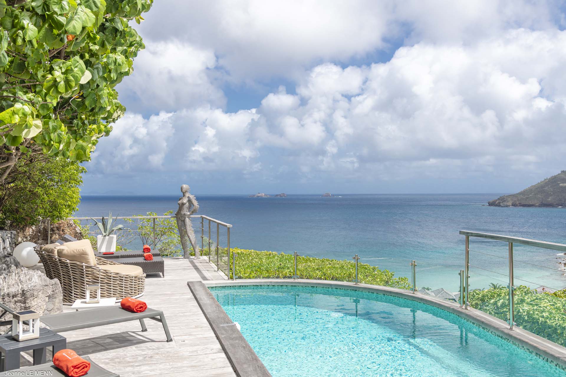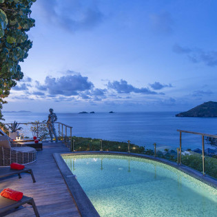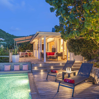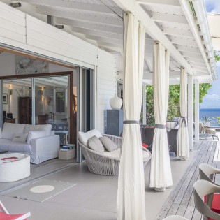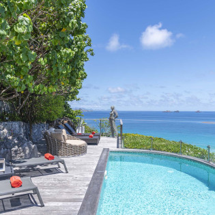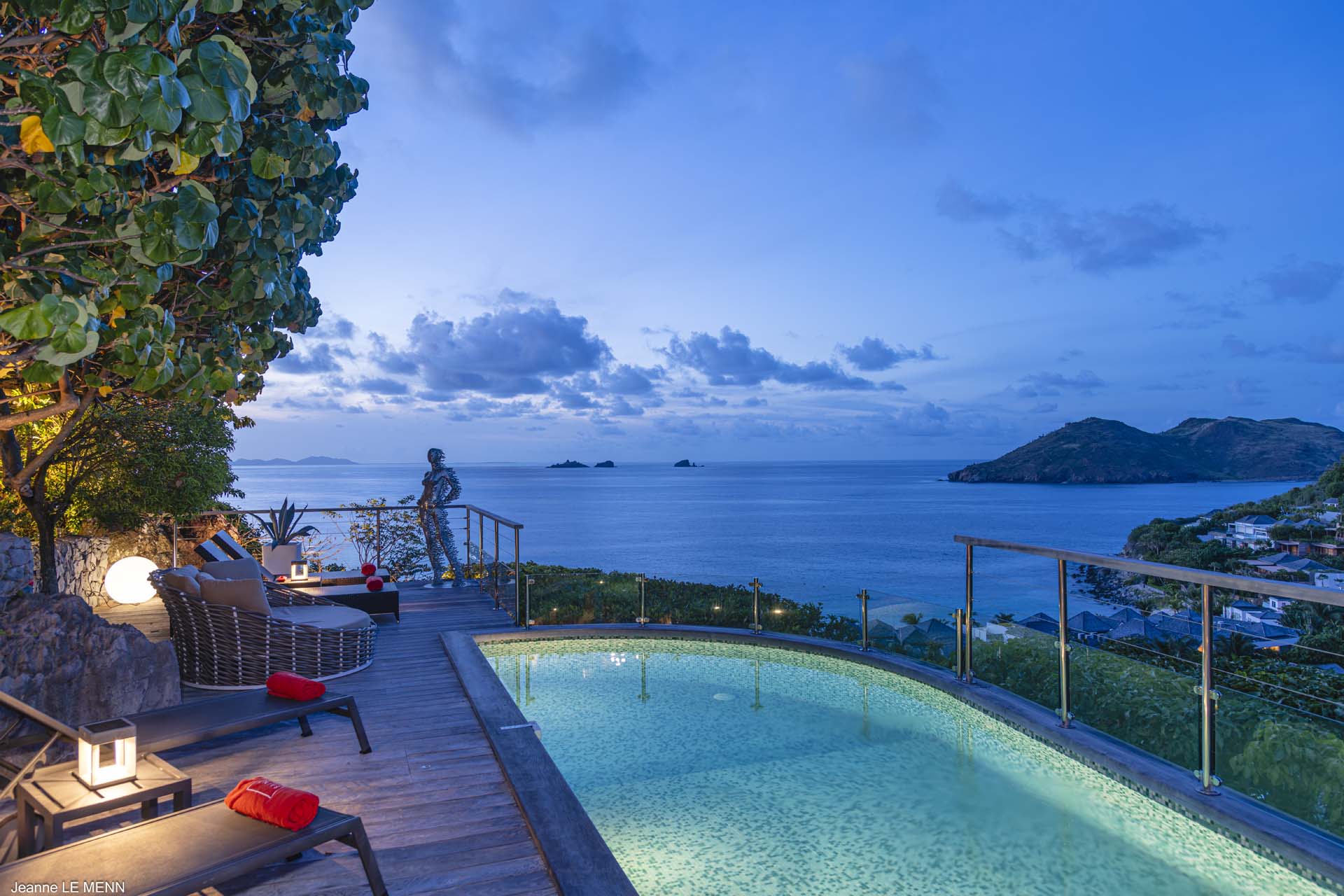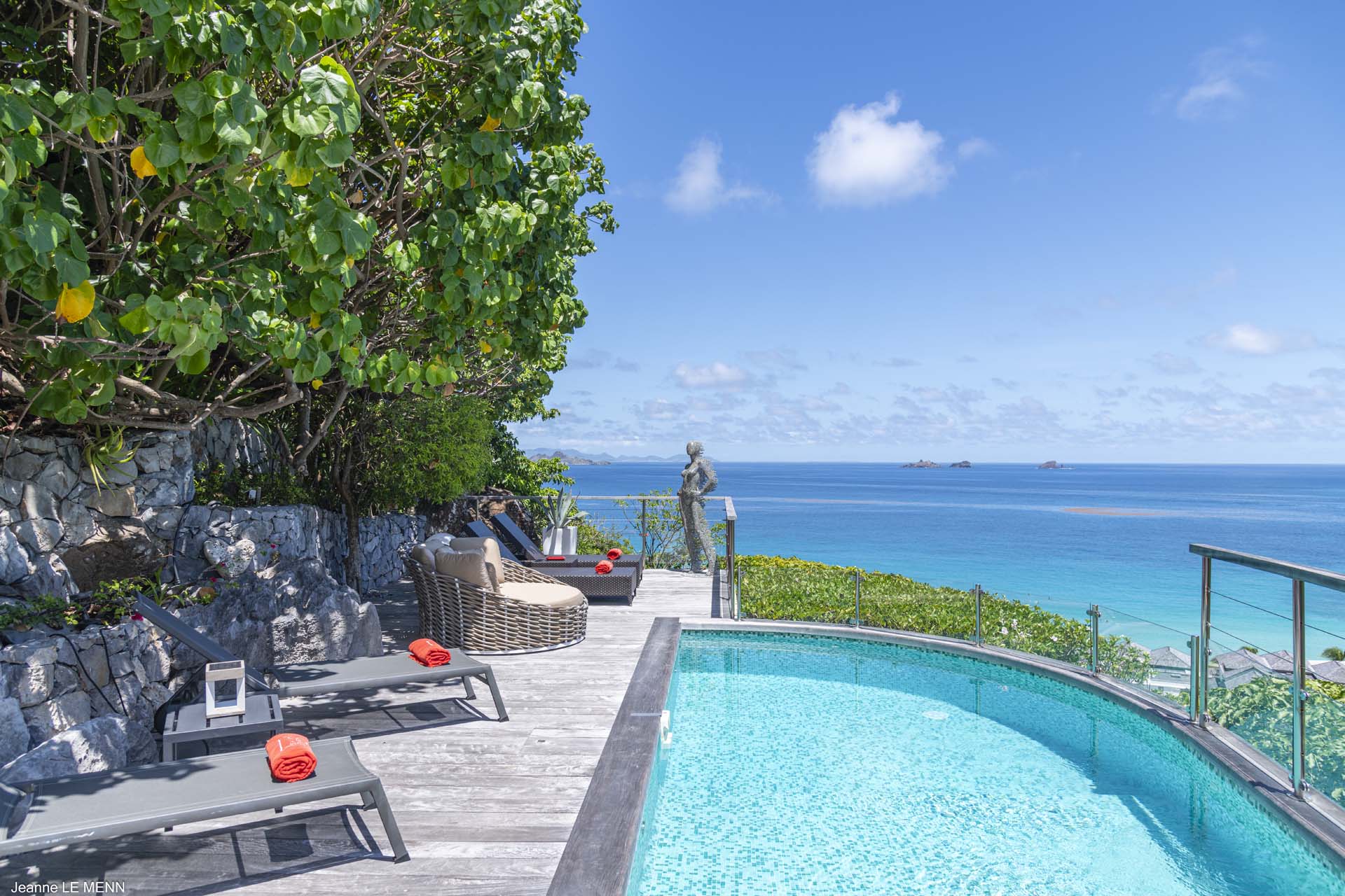 Villa Aloa has an abundance of features, the outdoor spaces include a multi-level deck with a kitty-cornered plunge pool that overlooks a lovely view of the sea.