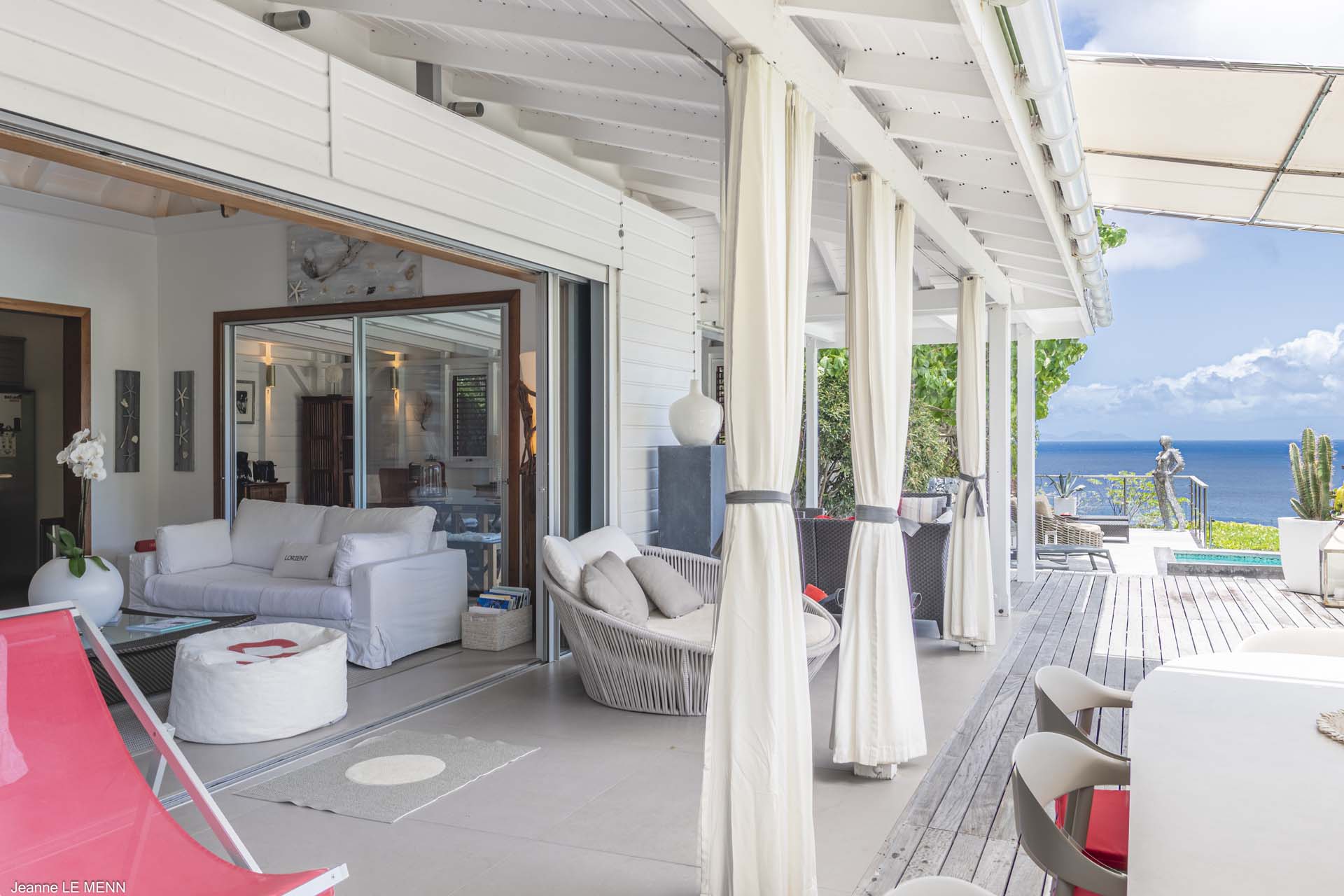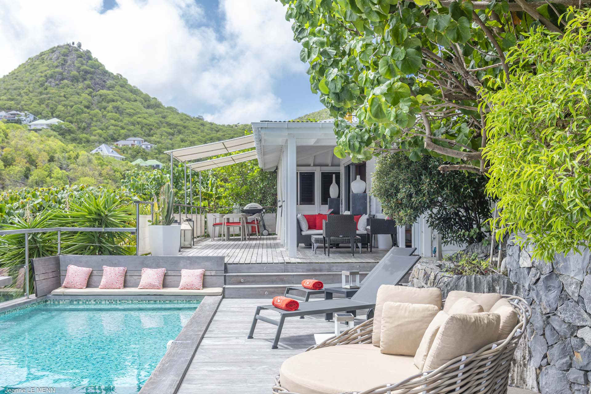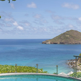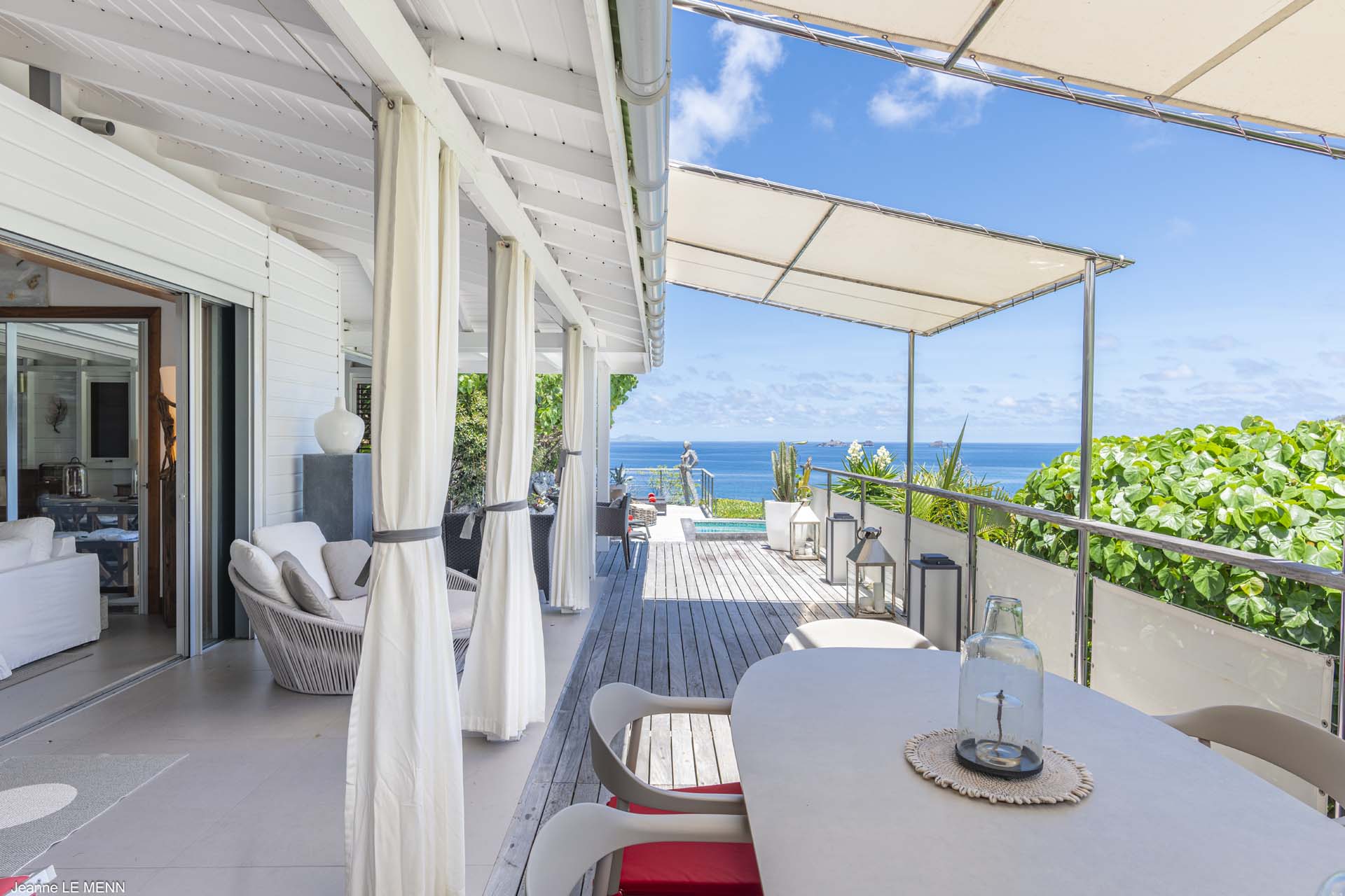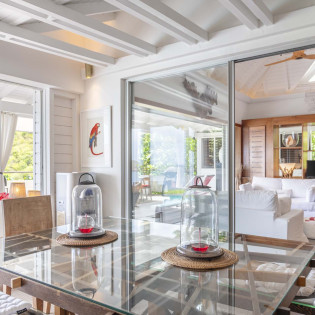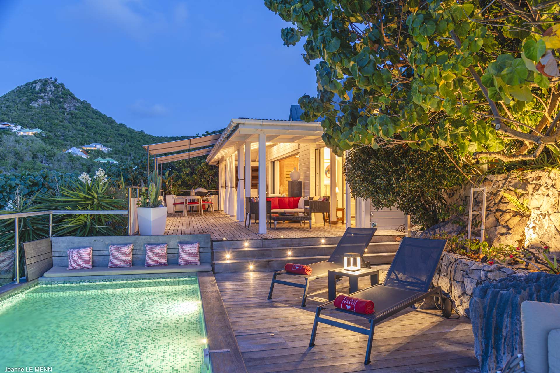 Villa Aloa has an abundance of features, the outdoor spaces include a multi-level deck with a kitty-cornered plunge pool that overlooks a lovely view of the sea.