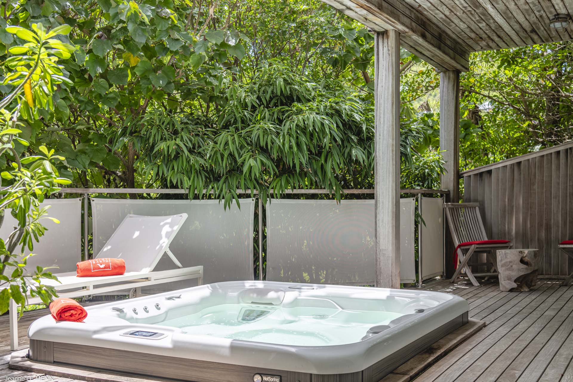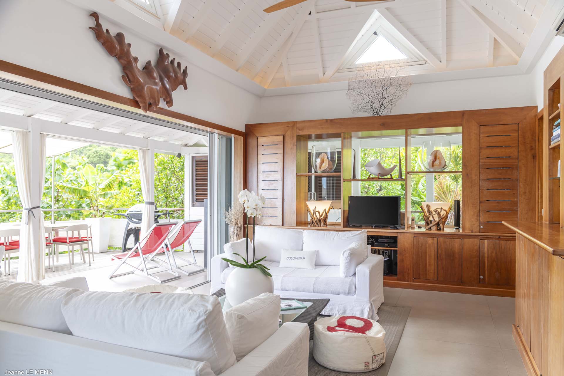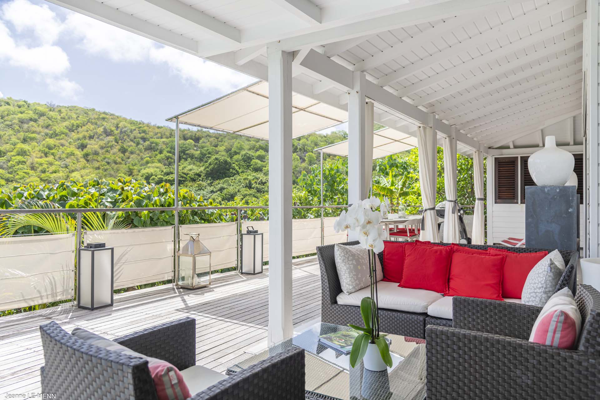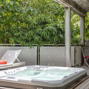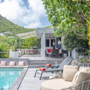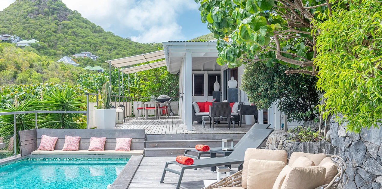 Villa Aloa has an abundance of features, the outdoor spaces include a multi-level deck with a kitty-cornered plunge pool that overlooks a lovely view of the sea.