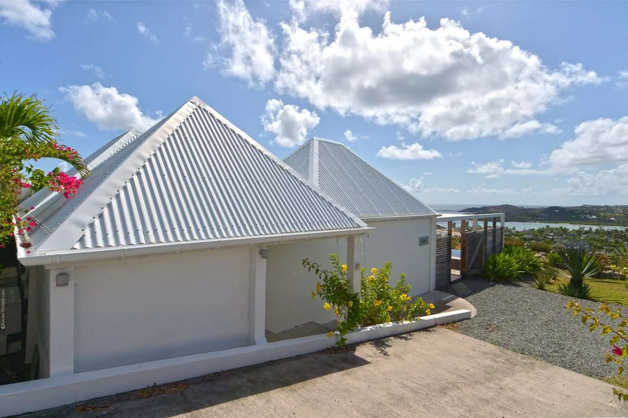Tucked away within a private gated community, this property enjoys expansive views of Marigot Bay, Tortue Island, and the turquoise lagoon at Grand Cul-de-Sac.