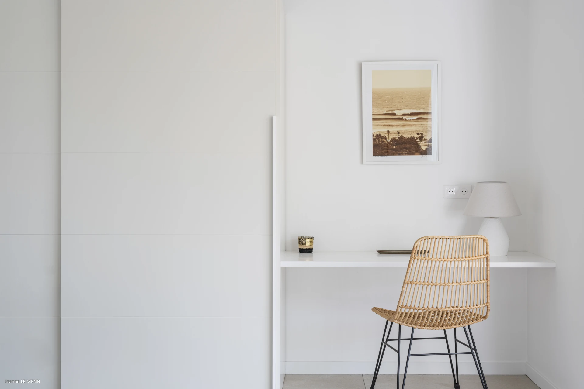 Both bedrooms feature king-size beds, closets, and private bathrooms, each opening onto the front terrace, where guests can revel in the captivating ocean vistas. Thoughtful touches of woven fiber accents infuse the space with a warm, authentic ambiance, ensuring a cozy and intimate retreat.