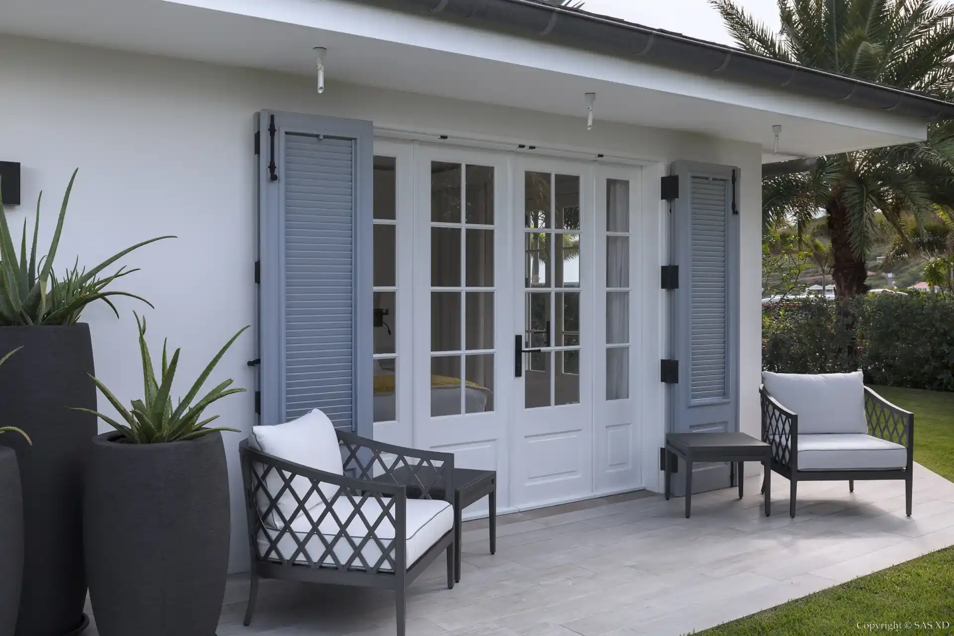 The villa's charm extends to an additional dining area in a delightful pavilion, as well as cozy chairs strategically placed on the porches, providing guests seeking moments of quiet with the perfect sanctuary. For those who need to stay connected, there is an office to catch up on work and stay in touch with the outside world.